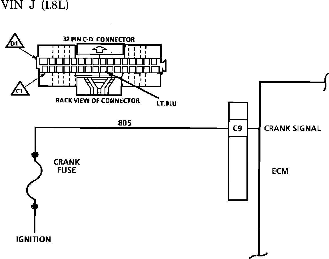 1. Checks for normal (cranking) voltage to terminal "C9" of ECM. Test light should be "ON" during cranking.