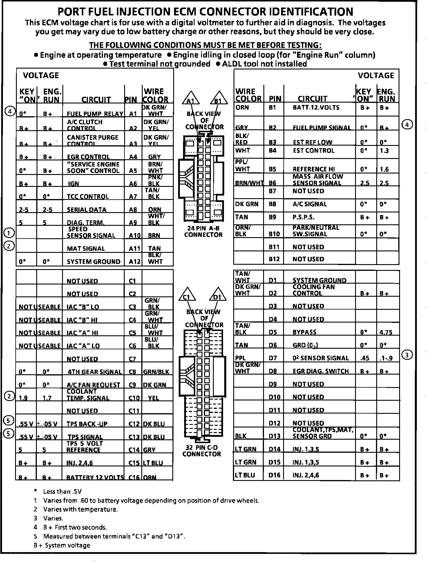 ECM Connector Terminal End View: