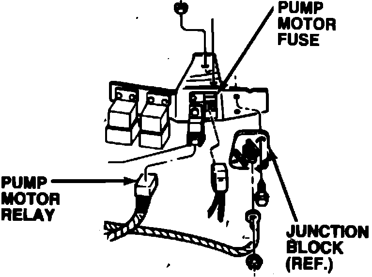 6. If pressure/warning switch is replaced, pump and motor assembly replacement; check fluid level in reservoir and ensure that it is filled to the mark. DO NOT OVERFILL OR UNDERFILL. Reconnect battery cable and turn ignition key to ON position until pump motor stops. Check for brake fluid leak.