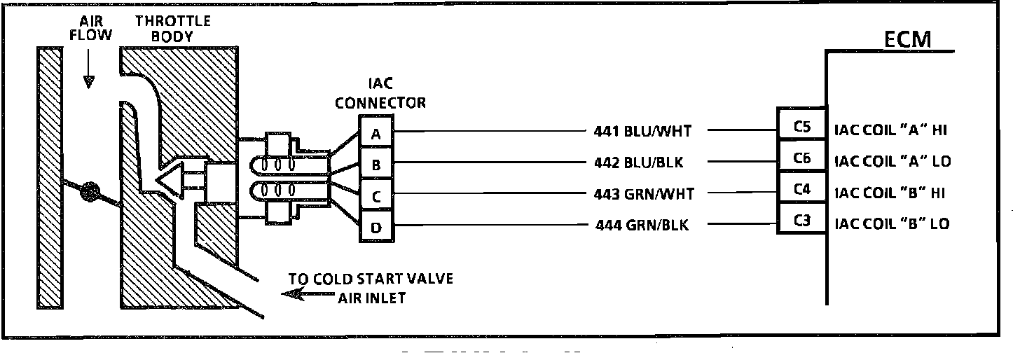 ^ To decrease idle speed - ECM will send enough counts to extend the IAC valve and reduce air flow through the idle passage around the throttle plate. This will reduce the ECM counts. Each time the engine is started and then the ignition is turned "OFF" the ECM will reset the IAC valve.