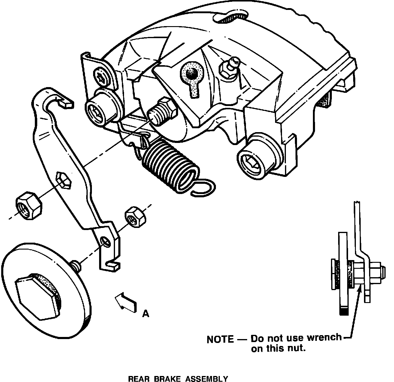 If the moan noise persists, a dampener can be added to the park brake actuator levers (refer to Illustration). If the actuator levers do not have predrilled holes, replace them with new levers. Use service manual instruction for park brake actuator lever removal and assembly.