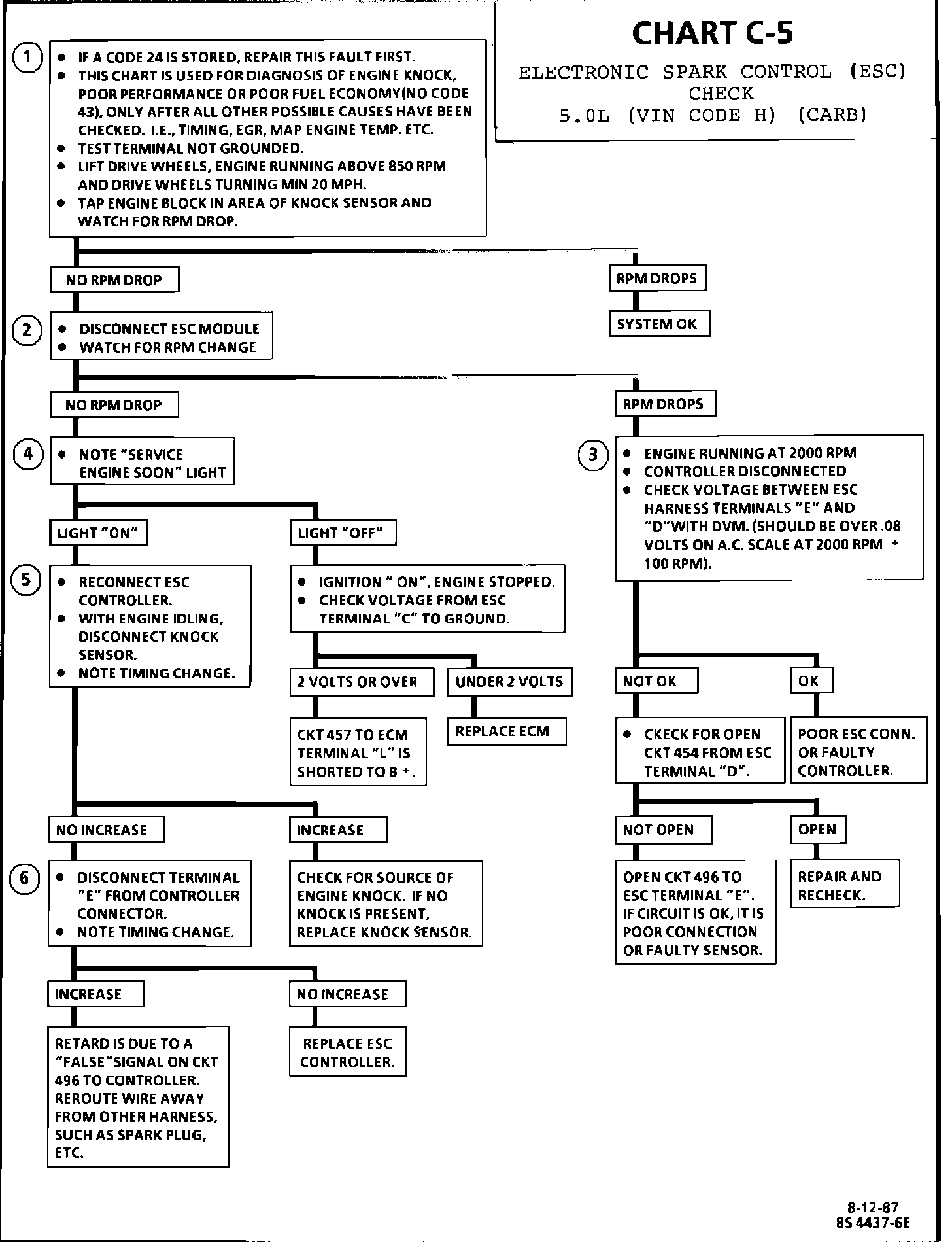 CHART C-5ELECTRONIC SPARK CONTROL (ESC) CHECK5.0L (VIN CODE H) (CARB):