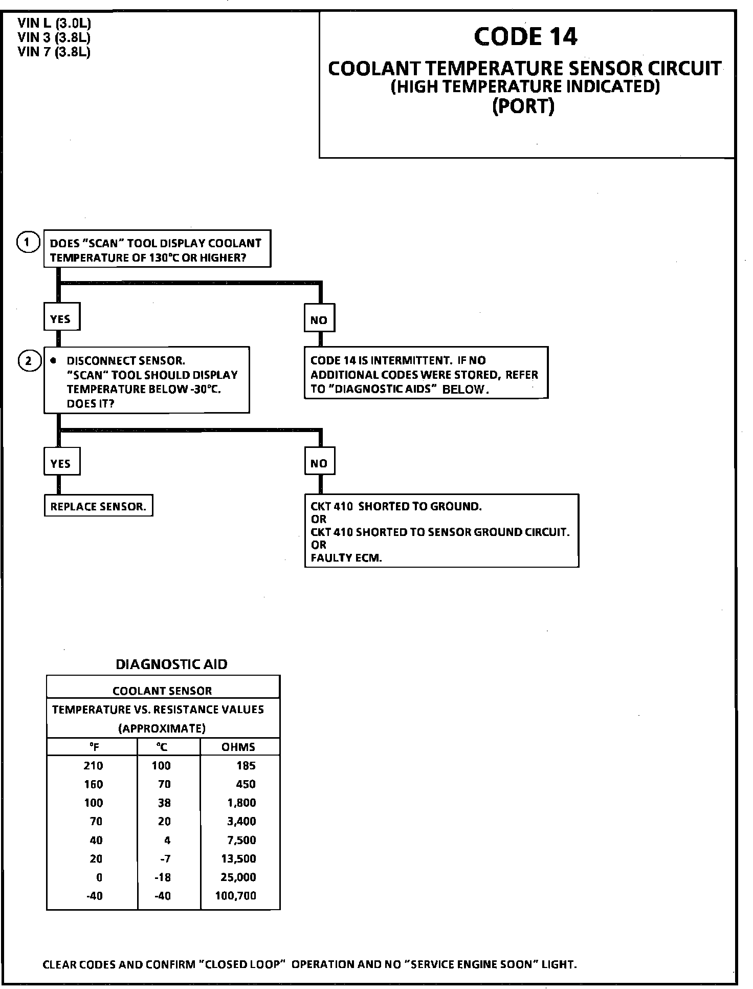 CODE 14 - COOLANT TEMPERATURE SENSOR CIRCUIT (HIGH TEMPERATURE INDICATED)