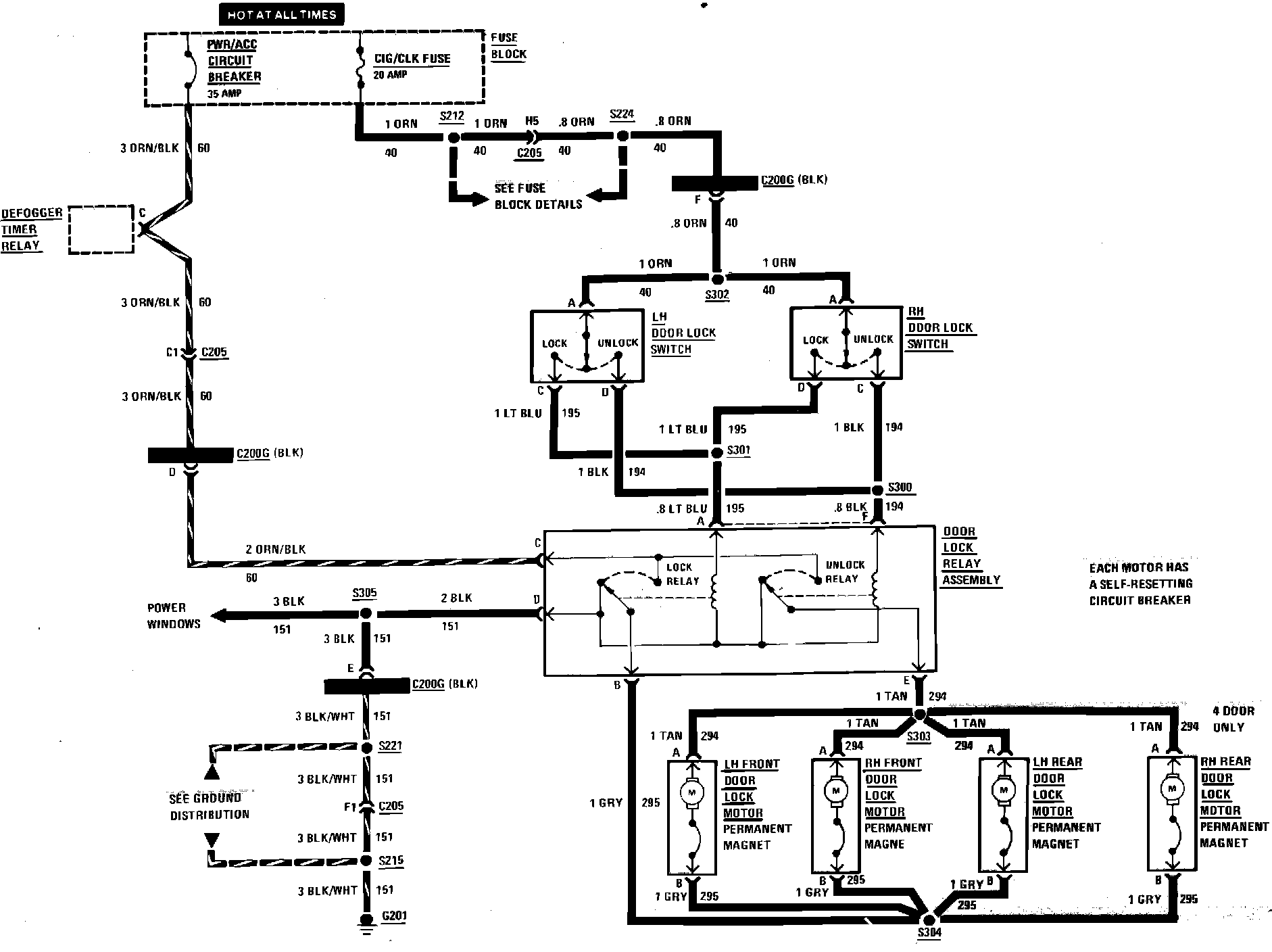 Power Door Locks Wiring Circuit: