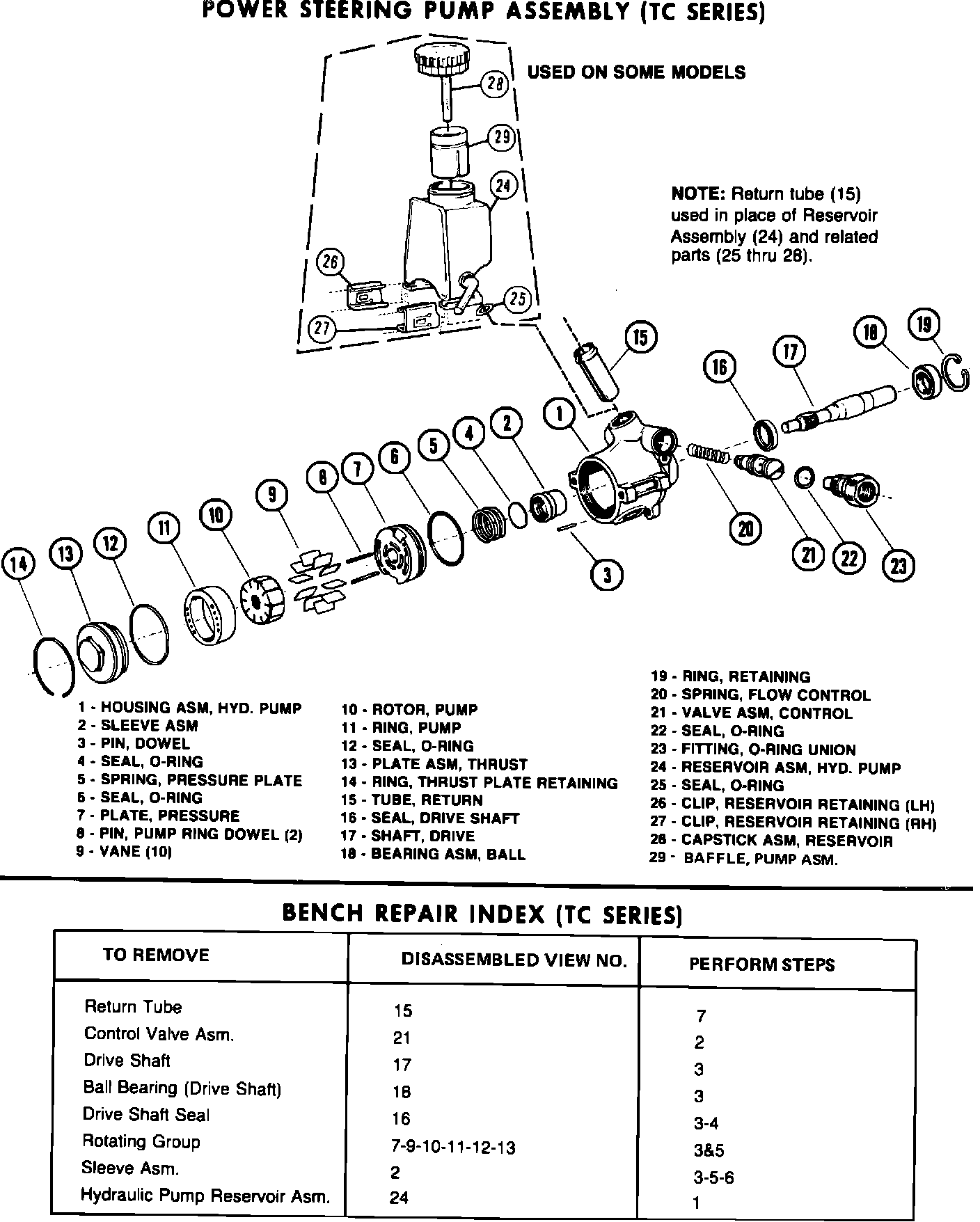 Number 86-3-9 Date 4/86FIGURE 6 - TC SERIES POWER STEERING PUMP AND REPAIR INDEX: