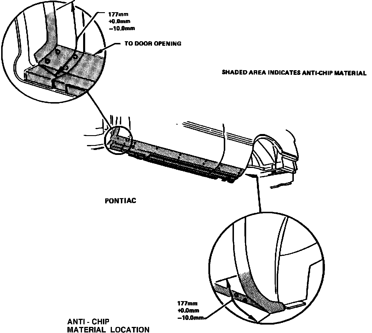 Pontiac will pay for refinishing all areas of the lower portion of the vehicle body in which the chip resistant material was applied if these areas exhibit excessive chipping or flaking of the paint finish. This service will be performed by your Pontiac dealer at no charge to you.