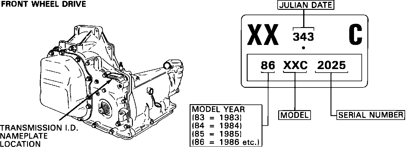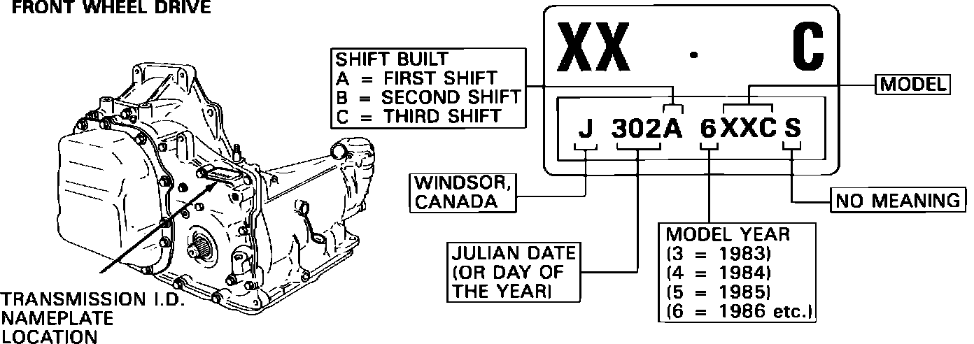 A 1985 or 1986 THM 125C transaxle built prior to October 29, 1985 (Julian date 302) in Windsor, or prior to December 9, 1985 (Julian date 343) in Ypsilanti, may exhibit a throttle valve buzz condition. Refer to above list for model/year applications. All of the models listed are 2.8L engine applications. Refer to Figure 1 for transaxle identification information.