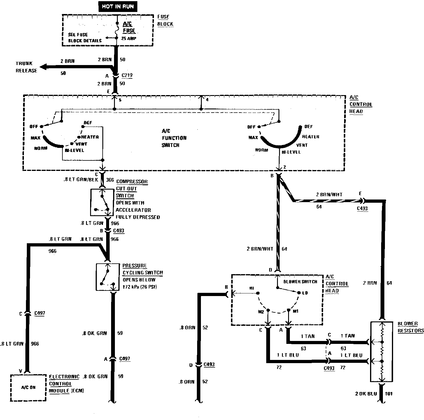 Air Conditioning Blower & Compressor Control Wiring Circuit (Less Electronic A/C):