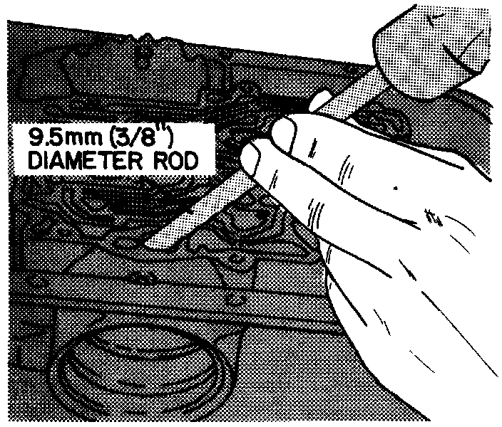 c. Using 3/8 in. (9.5 mm) diameter metal rod and hammer, drive check valve assembly until flush or below surface or third accumulator case hole, see image.