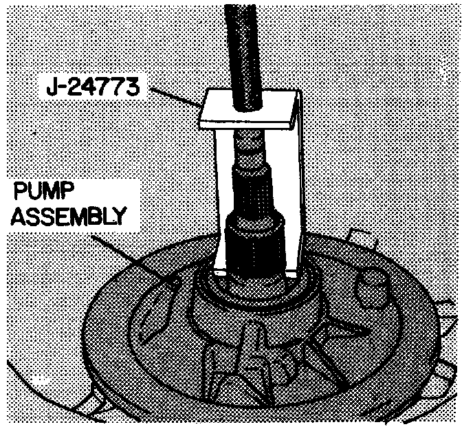 10. Remove pump-to-case bolts, then using tool J-24773, remove pump assembly and gasket, see image.