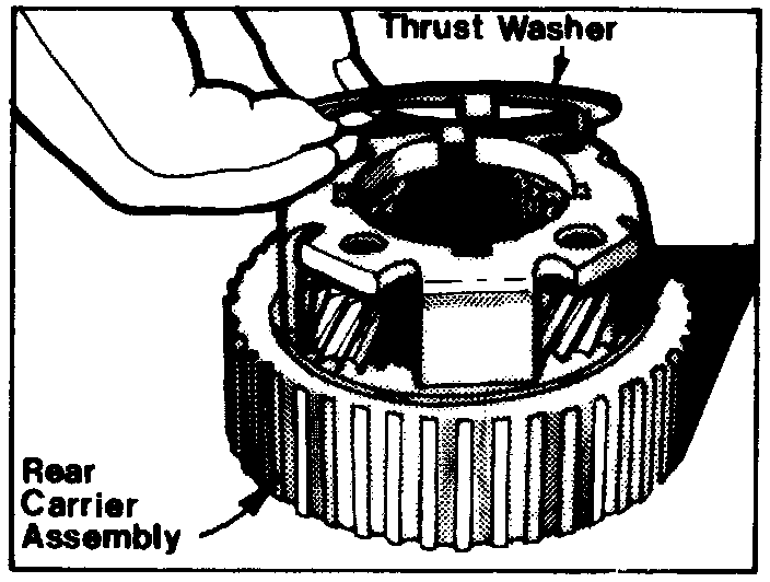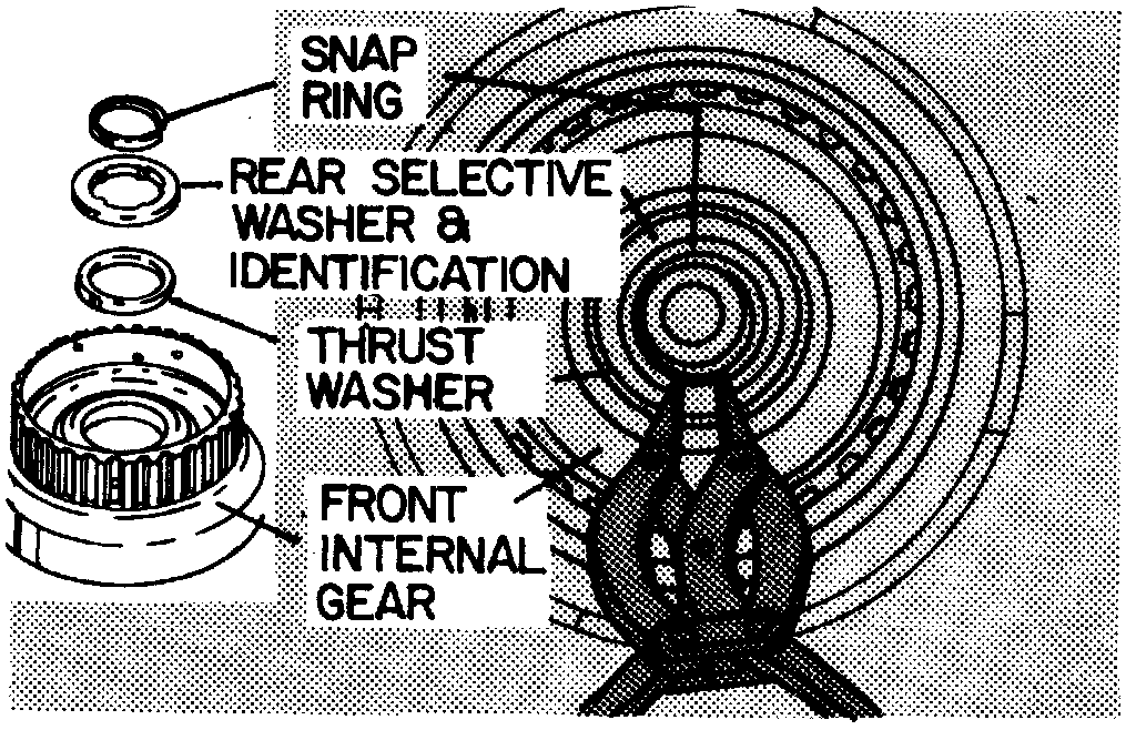 17. Remove rear selective washer and thrust washer from front internal gear.