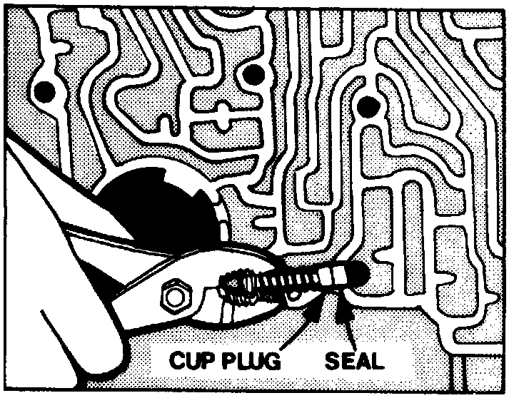 21. Using a 14 sheet metal screw, remove housing to case cup plug and seal by turning screw 2 or 3 turns and pulling straight out, see image. Discard plug and seal. If cup plug will not come out, grind about 3/4 inch (20 mm) from end of 4 easy out to remove plug. Use 14 sheet metal screw to remove seal.