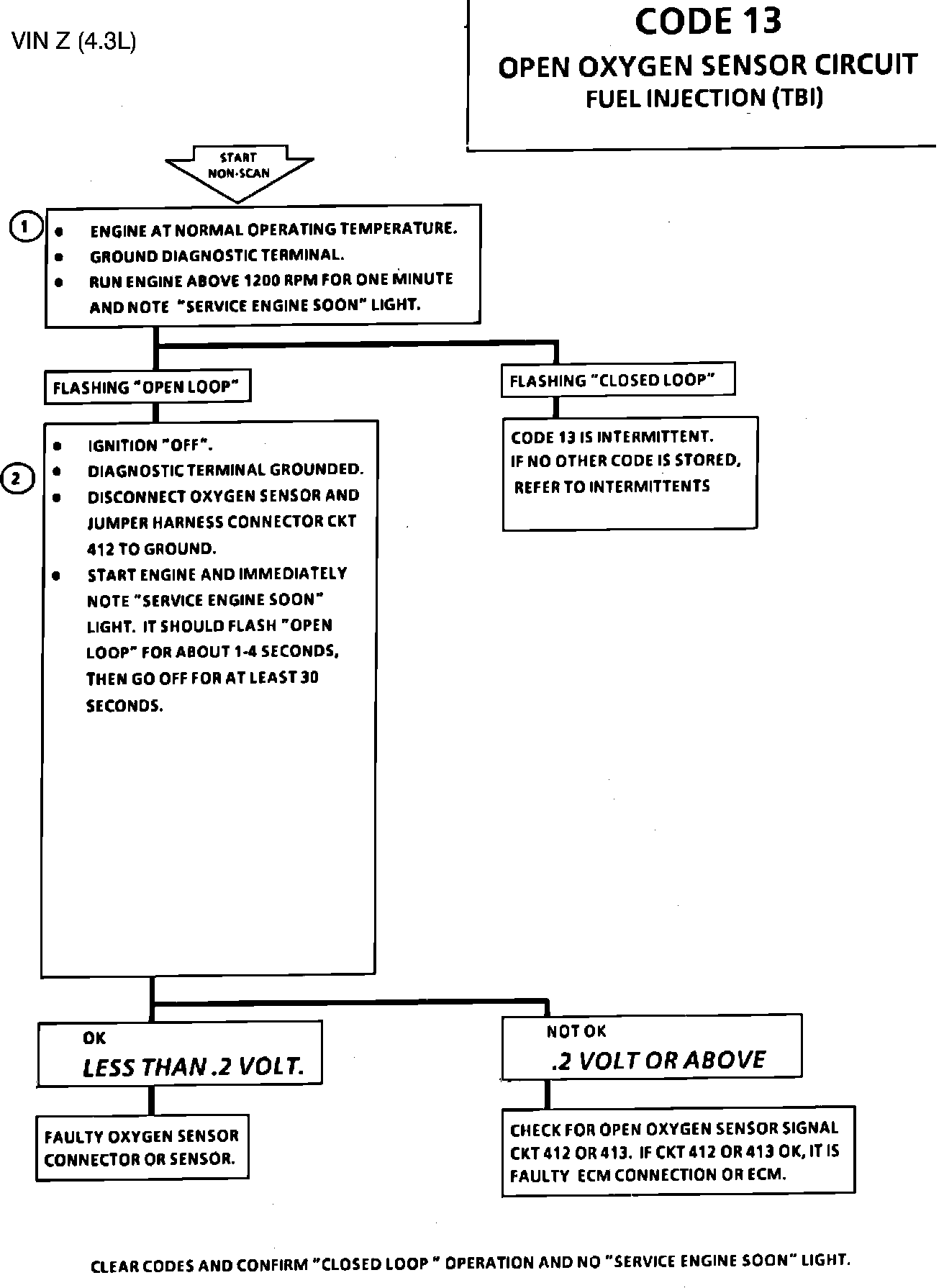 Fig. 039 - Wiring Diagram for Code 13 Open Oxygen Sensor Circuit. VIN Z: