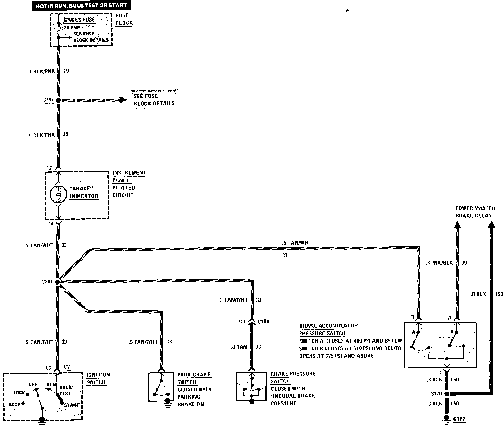 Brake Warning System Wiring Circuit (Wagon Less Power Master Brake System):