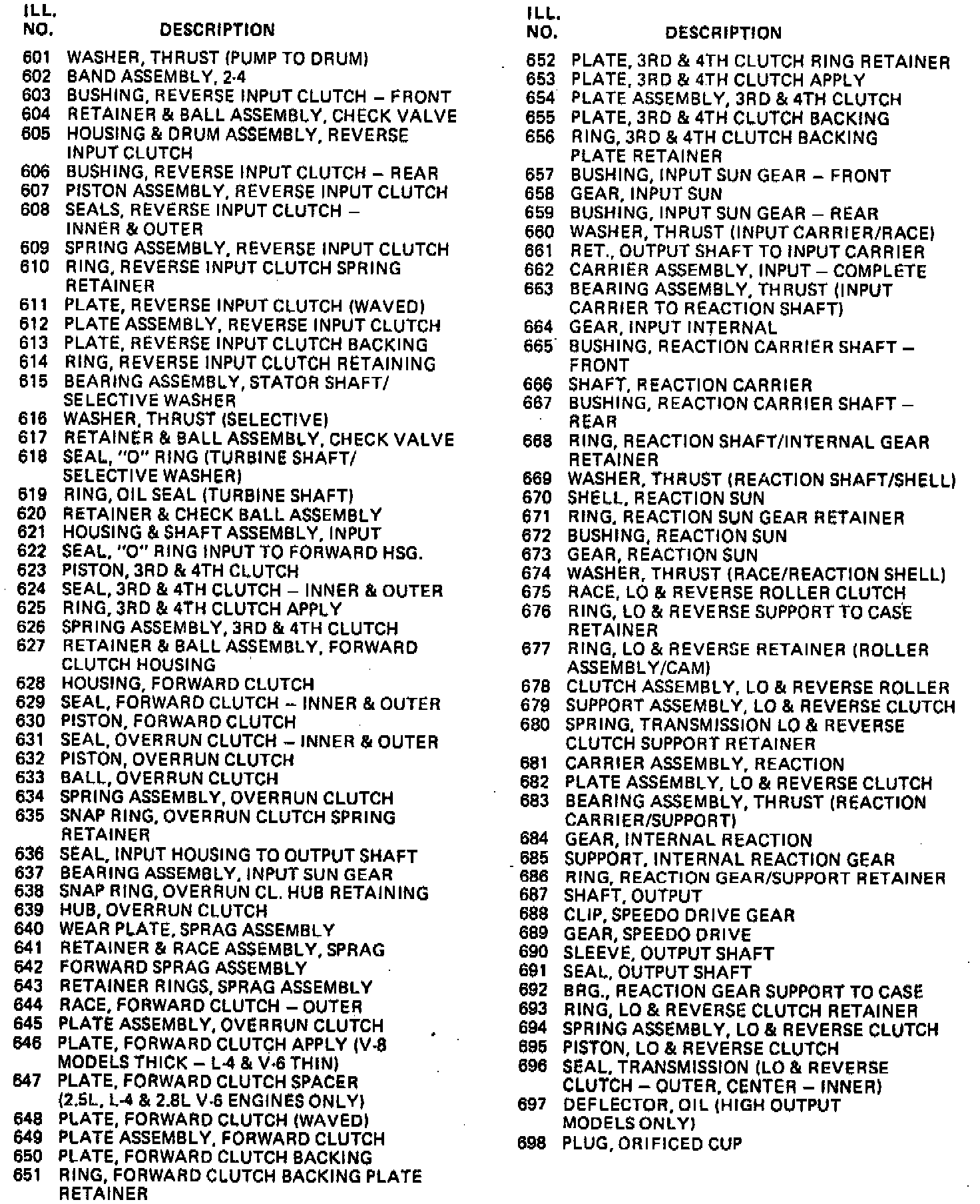 Refer to Figs. 1 and 4 during subassembly service and transmission assembly procedures.