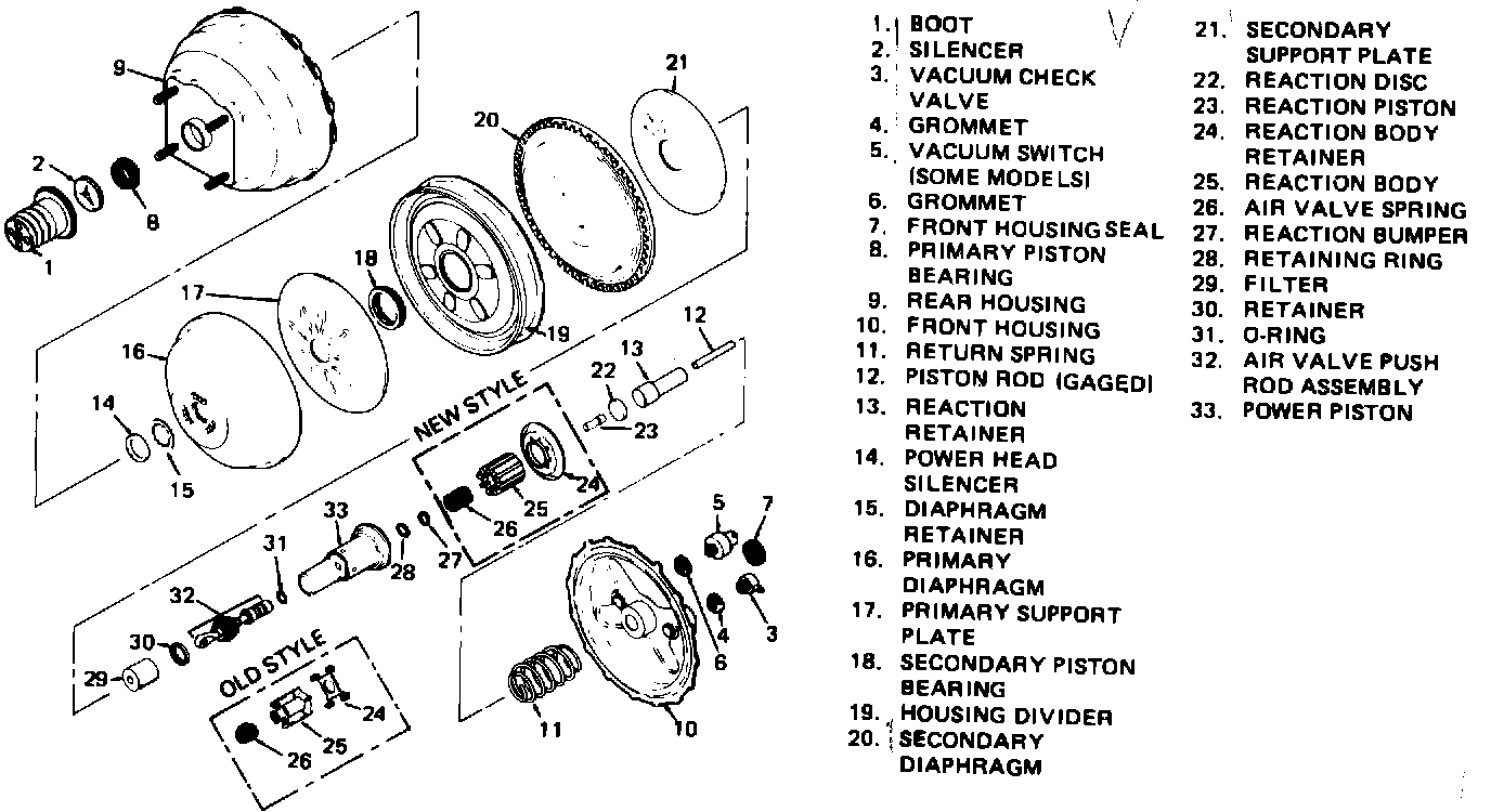 NOTE: NEW STYLE AND OLD STYLE POWER PISTON COMPONENTS ARE INTERCHANGEABLE.
