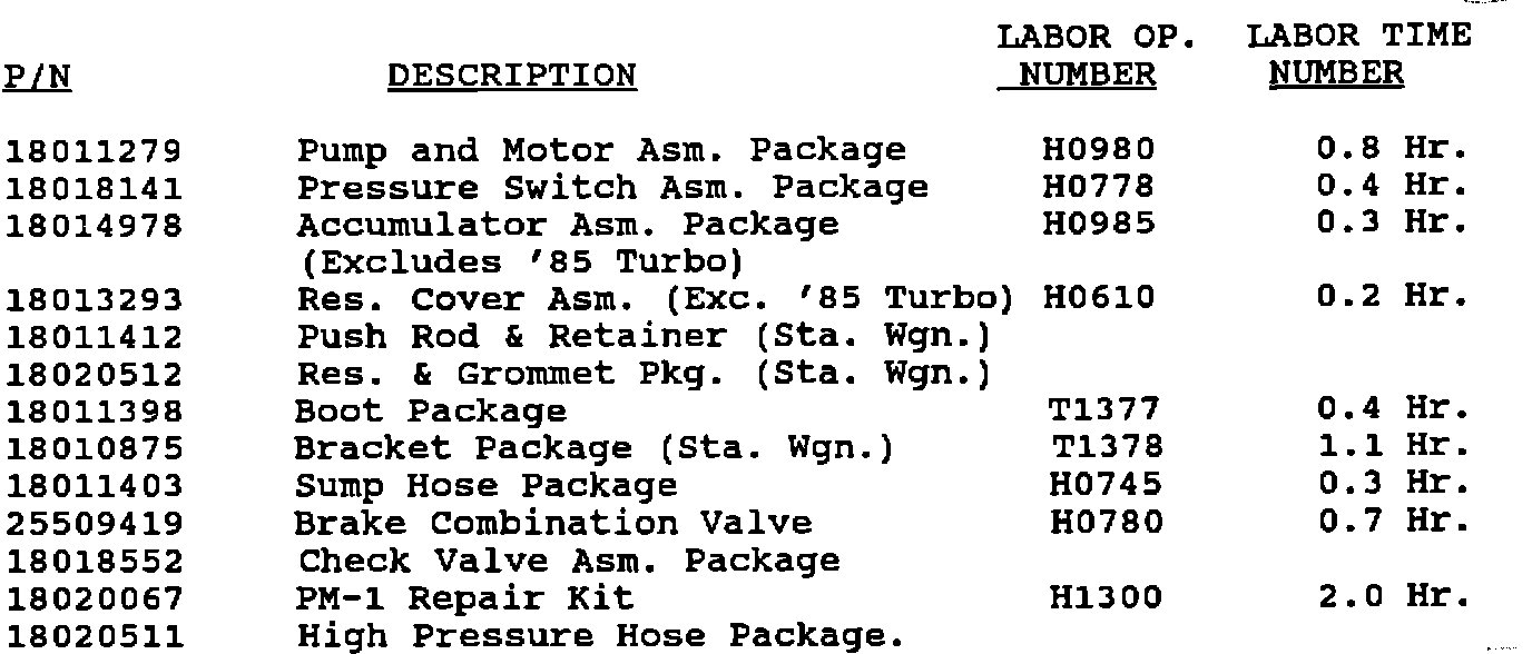 The repair kits are available to assist in servicing the Powermaster brake units. The labor times indicated include time for the functional system check and diagnostic procedures.