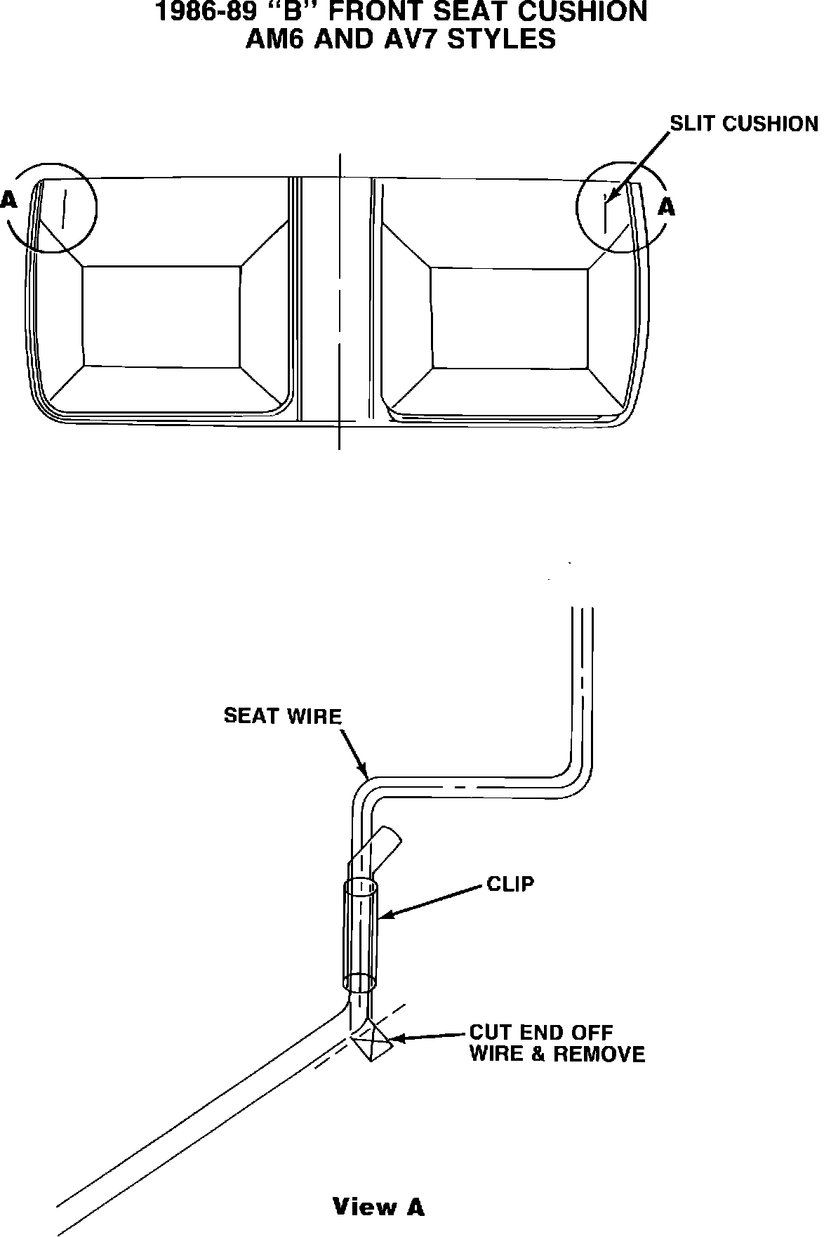1986-89 "B" FRONT SEAT CUSHION AM6 AND AV7 STYLES:
