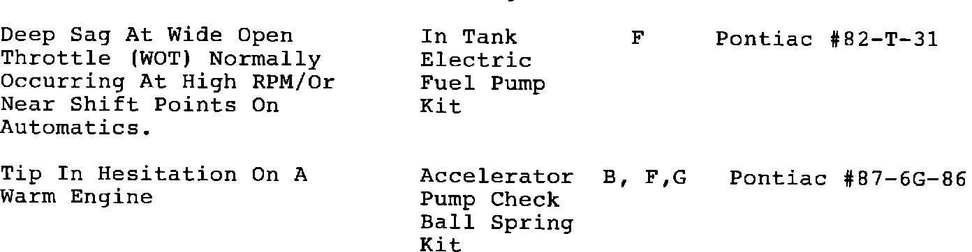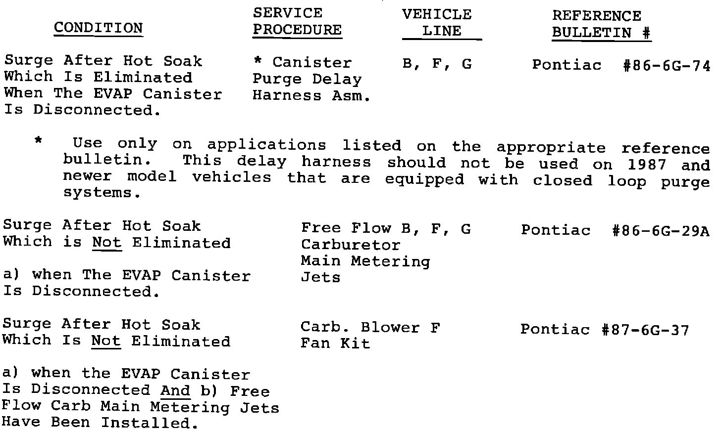 Subject: DRIVEABILITY SUMMARY - WARM AMBIENTS 1982-87 VEHICLES WITH 5.0L LG4 (VIN CODE H) ENGINE OR 5.0L L69 (VIN CODE G) ENGINE