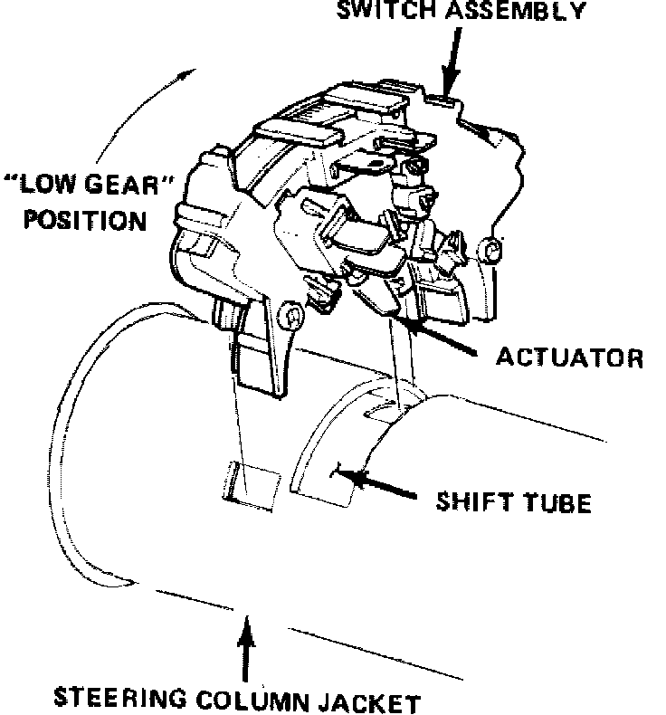 4. Position new switch on steering column, aligning switch carrier tang in shift selector tube slot.