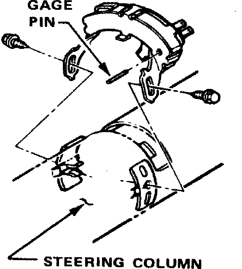 1. Lock steering column in ``Park'' position for automatic transmissions and ``Reverse'' for manual transmissions, then remove screws attaching switch to steering column.