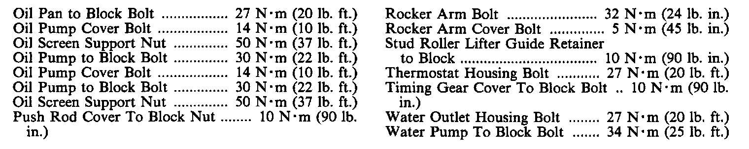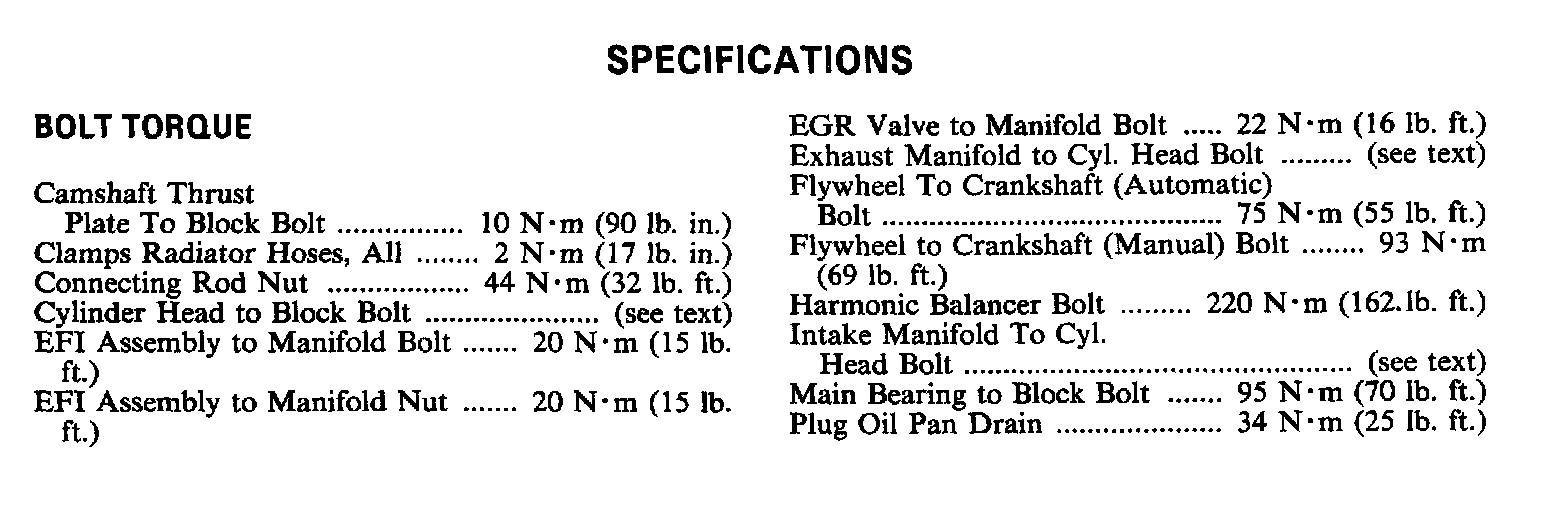 Continued Engine Specifications: