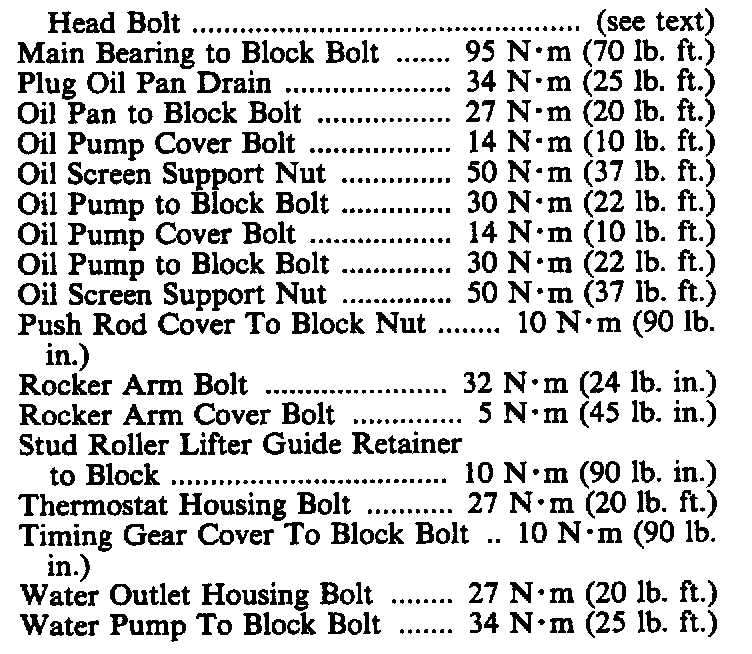 Torque Specifications: