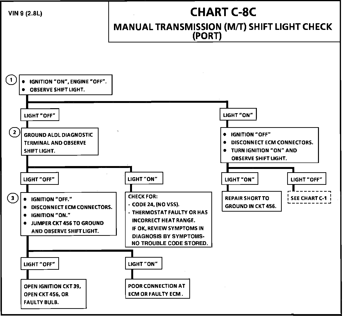 CHART C-8C MANUAL TRANSMISSION SHIFT LIGHT CHECK 2.8L (PORT)