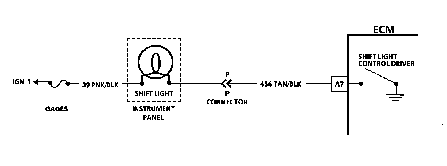 1. This should not turn "ON" the shift light. If the light is "ON," there is a short to ground in CKT 456 wiring or a fault in the ECM.