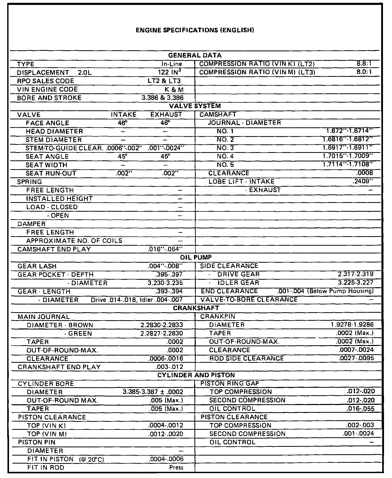 Continued Engine Specifications: