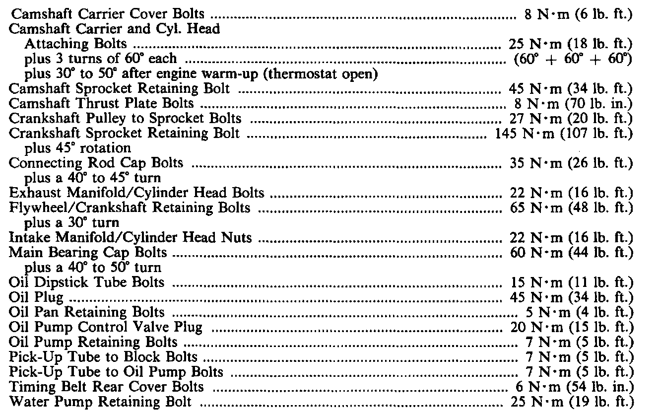 Torque Specifications: