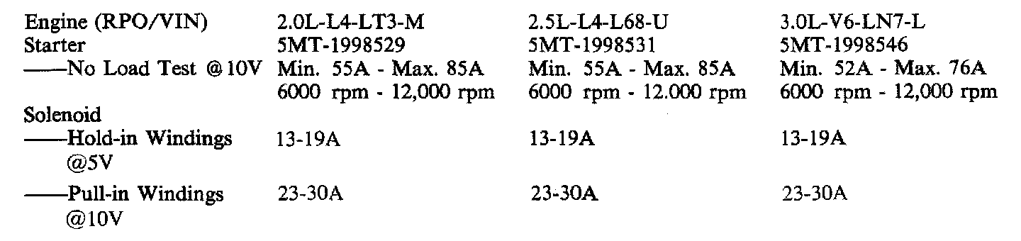STARTER SPECIFICATIONS