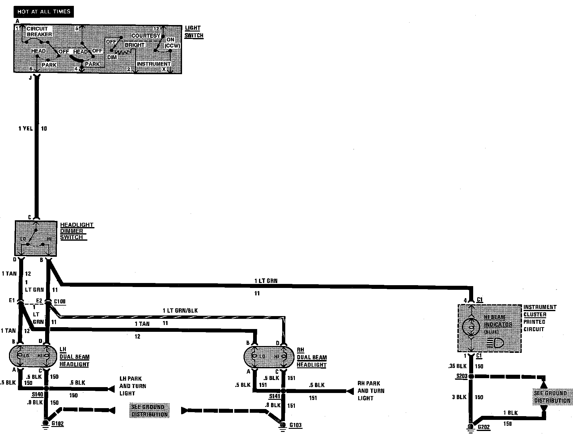 Headlamp Wiring Circuit:
