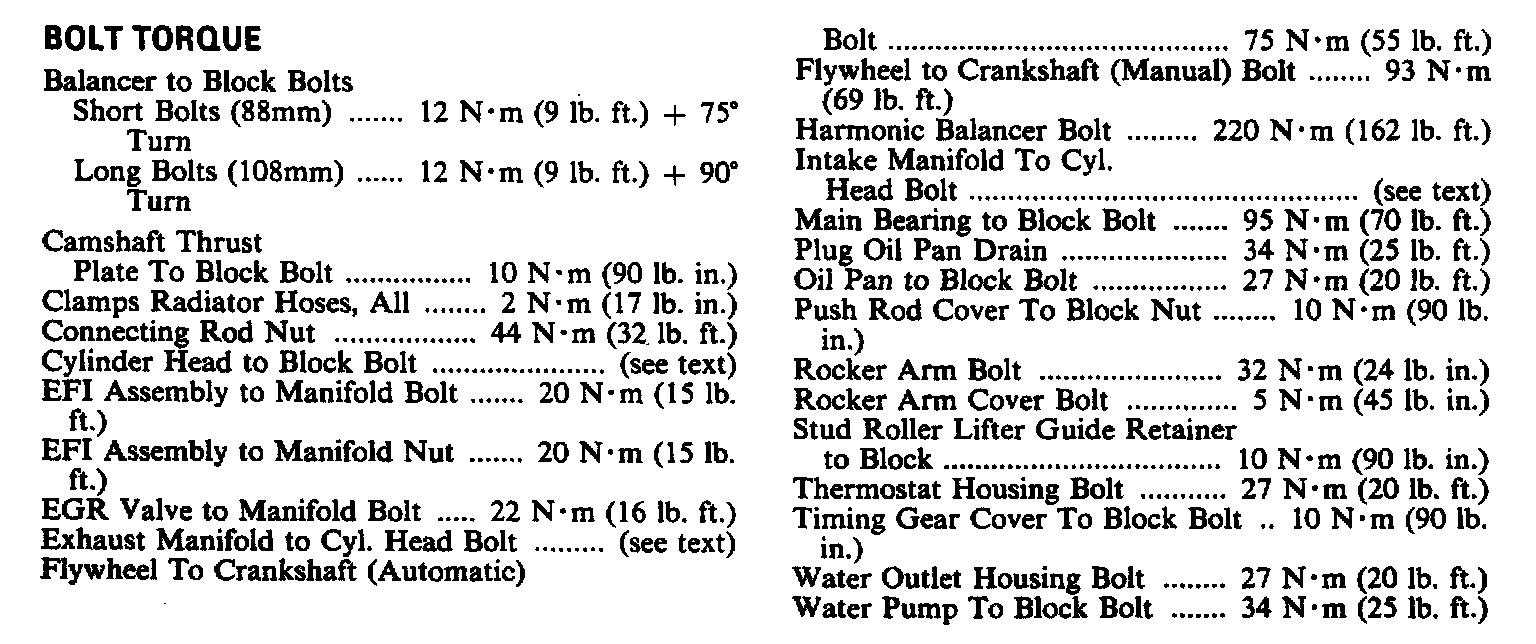 Torque Specifications: