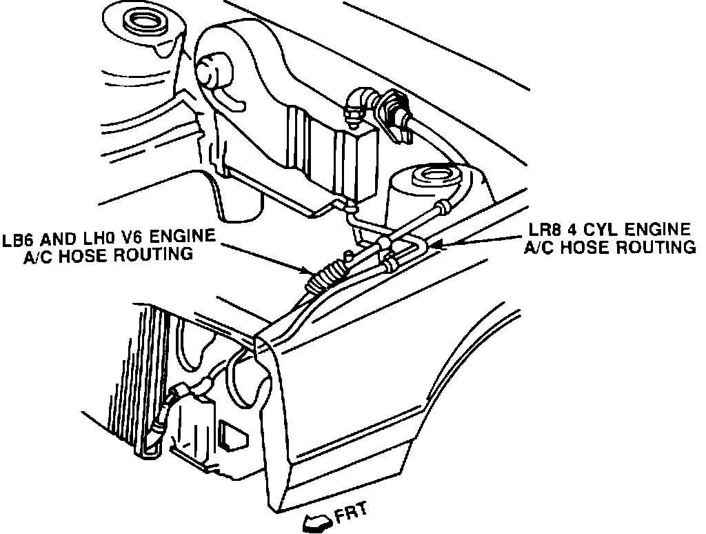 Some 1987-88 6000 models with 2.5L (VIN Code R) , 3.1L (VIN Code T) and 2.8L (VIN Code W) engines with MD9 3-speed transmission and C60/C67 Air Conditioners have a potential rub through condition of the A/C pipe by the auto-transmission cable. This pipe is part of the A/C hose assembly routed along the left fender rail from evaporator to accumulator. The vibration and engine roll movement of the transaxle may cause the shift cable to rub through the A/C pipe, causing a refrigerant leak and an inoperative A/C system.