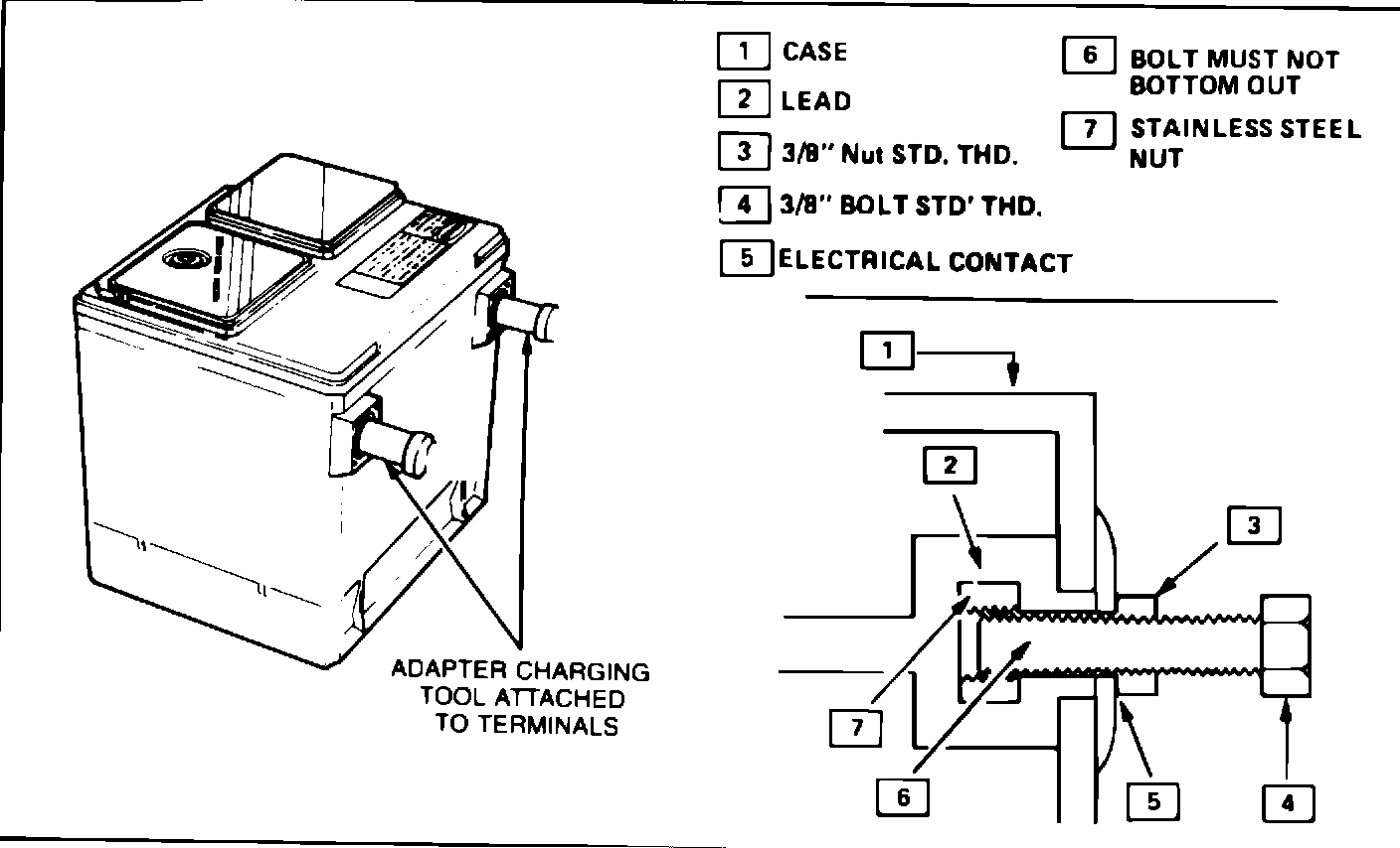 4. Temperature of the battery will change the minimum voltage to pass the load test. To properly determine minimum voltage, estimate temperature battery has been exposed to for the last several hours, i.e., room temperature or outside ambient to within 10 degrees Fahrenheit, If voltage is equal to or above minimum voltage listed in the appropriate Service Manual, Section 6D, the battery is good and should be returned to service. If voltage is less than minimum requirement, replace battery.