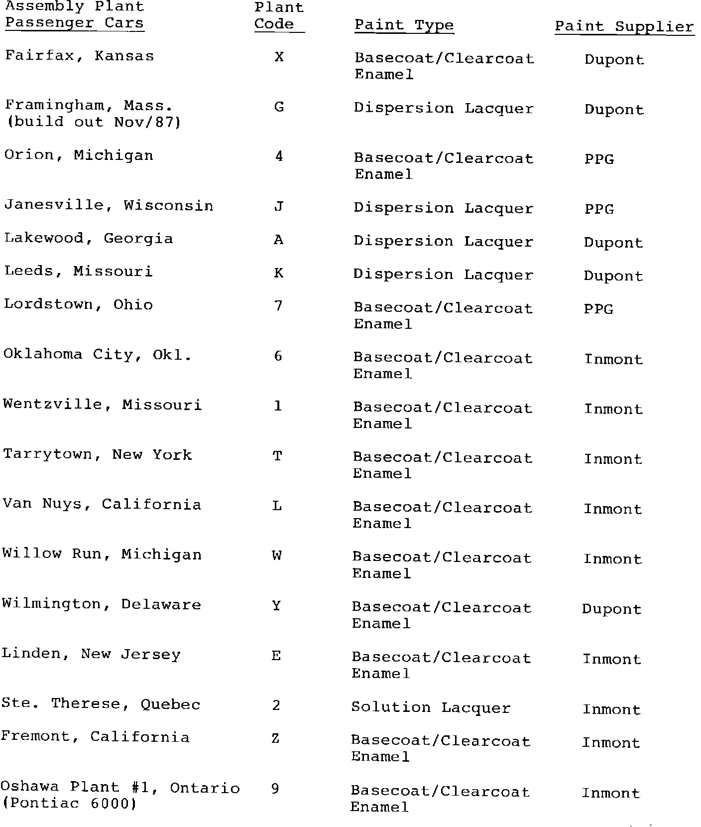 Paint - Assembly Plant Identification