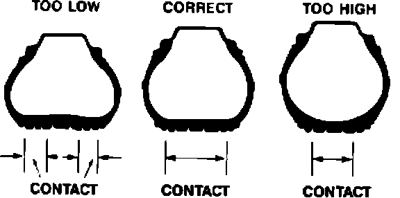 Underinflated tires may give a smooth ride, but handling and tread life will suffer.. Too little air causes the sidewalls and tread to buckle, reducing the area of the road contact patch and causing a loss of traction, especially on curves. Refer to Figure 1.