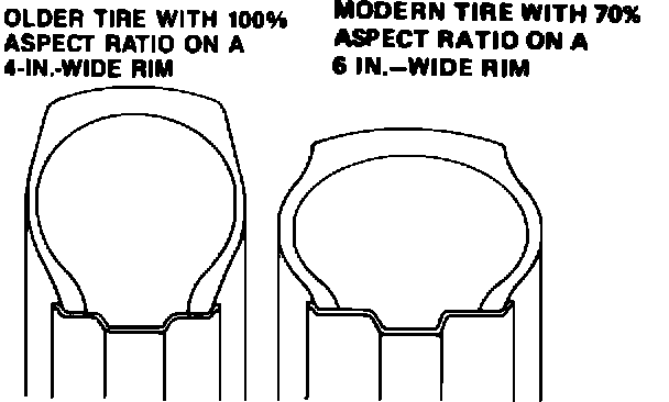 At first, tires were circular tubes with 100 percent aspect ratios. It was discovered that tires handled better when mounted on a wider rim. Tires were then made wider without increasing their height, which tended to put more tread on the road and provided better handling, better load-carrying capacity and longer life. Today's passenger-car tires have aspect ratios ranging from 80 to 50 percent.