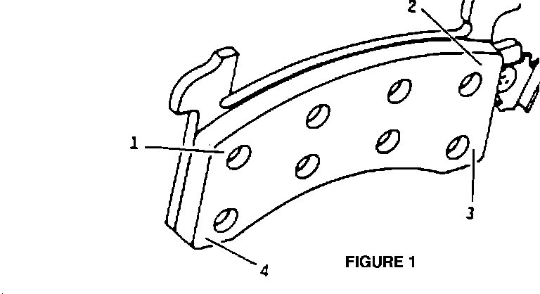 E. Inspect brake pads for taper wear or excessive wear. Taper wear can be determined by taking measurements at the four points shown in the diagram.