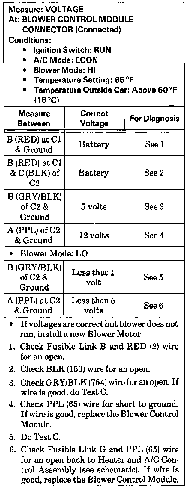 B: Blower Control Module Test:
