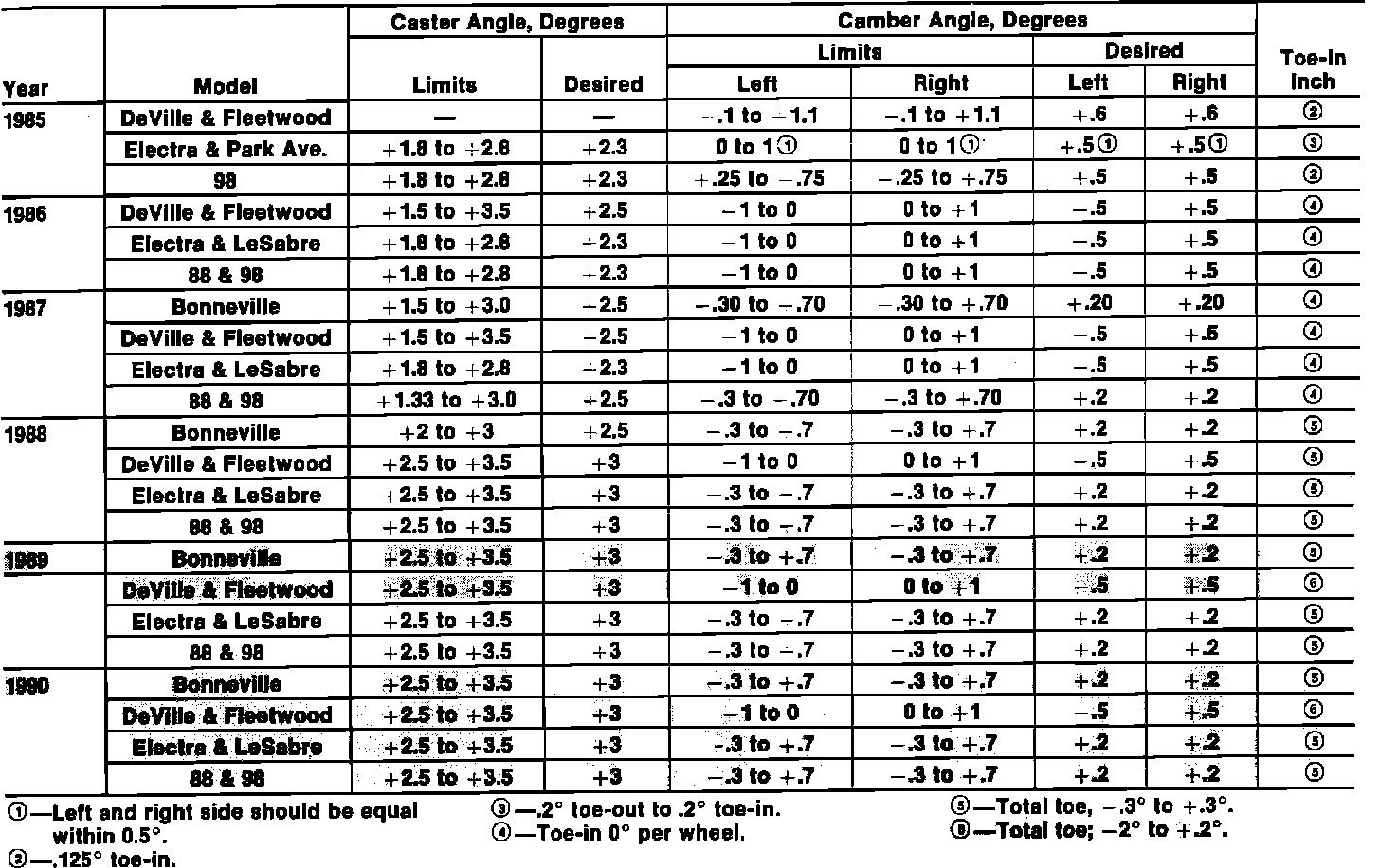Front Alignment Specifications