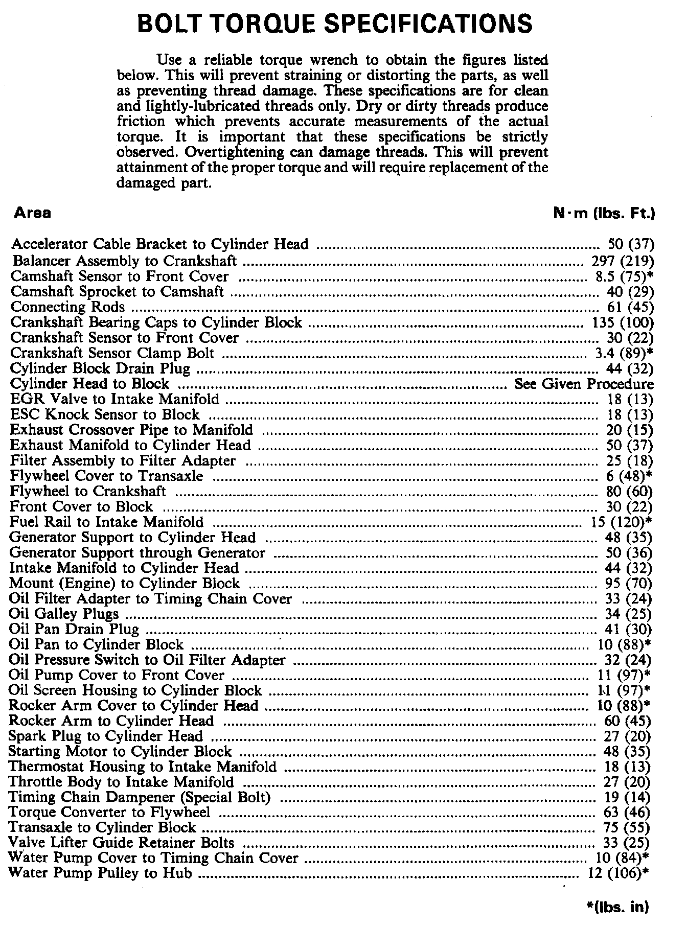 Torque Specifications: