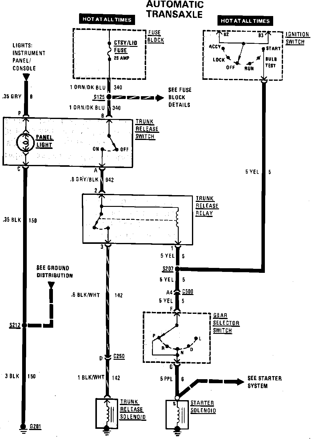 Trunk Release Wiring Circuit Automatic Transaxle: