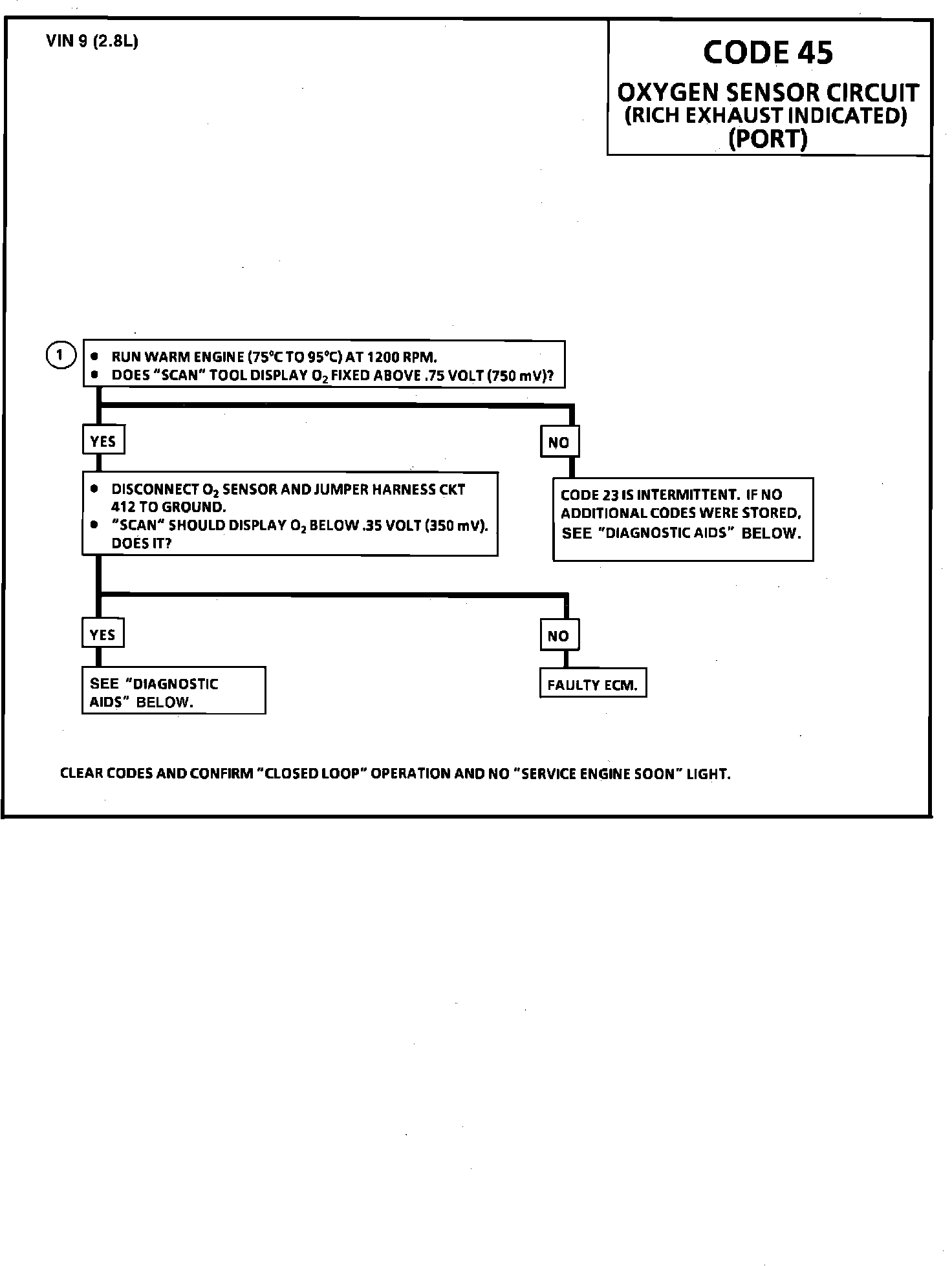 CODE 45 - OXYGEN SENSOR CIRCUIT (RICH EXHAUST INDICATED)
