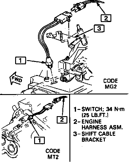Fig. 9 Back-up light/neutral start switch replacement. Automatic transmission: