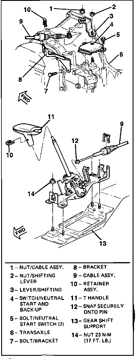 c. Torque lever attaching nut to 20 ft. lbs. while holding lever out of Park.