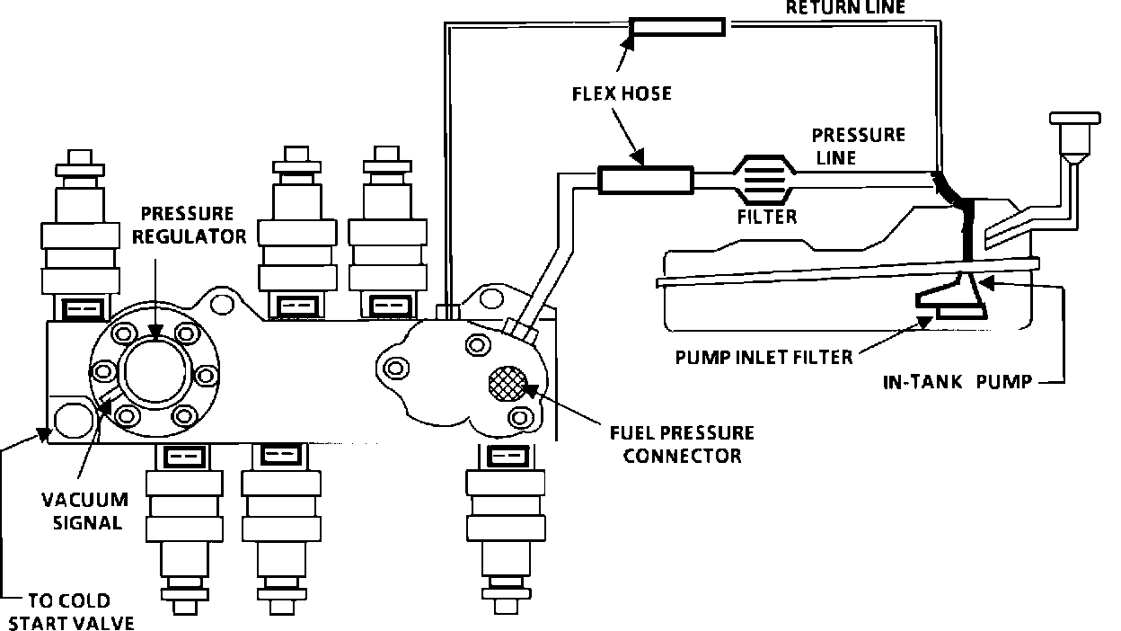2. When the engine is idling, the manifold pressure is low (high vacuum) and is applied to the fuel regulator diaphragm. This will offset the spring and result in a lower fuel pressure. This idle pressure will vary somewhat depending on barometric pressure, however, the pressure idling should be less indicating pressure regulator control.