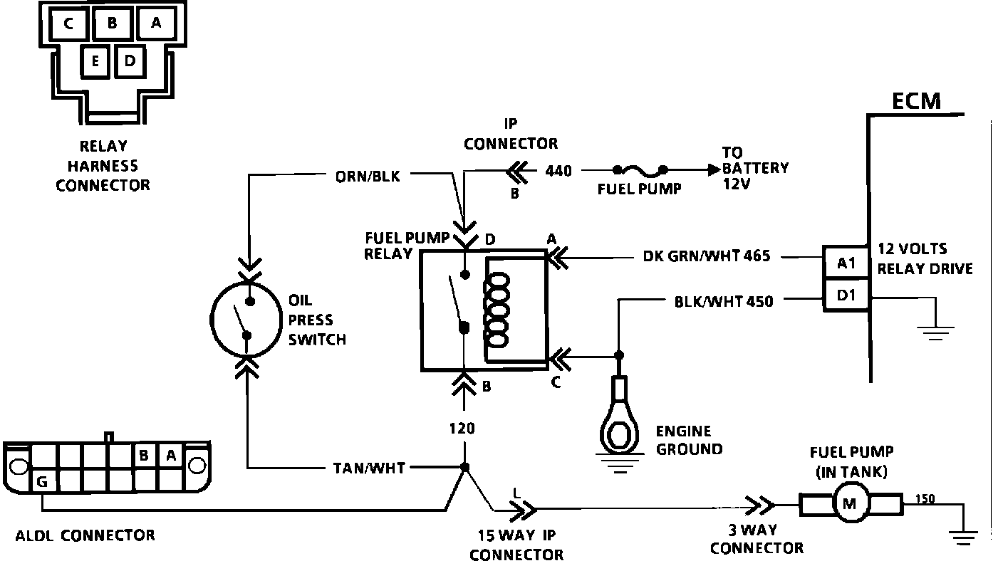 12. Cheeks the oil pressure switch to be sure it provides battery feed to the fuel pump should the pump relay fail.