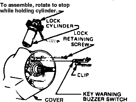 4. Reverse procedure to install. Turn lock cylinder to Run position before installing key warning buzzer switch.